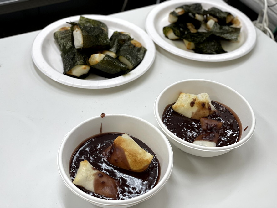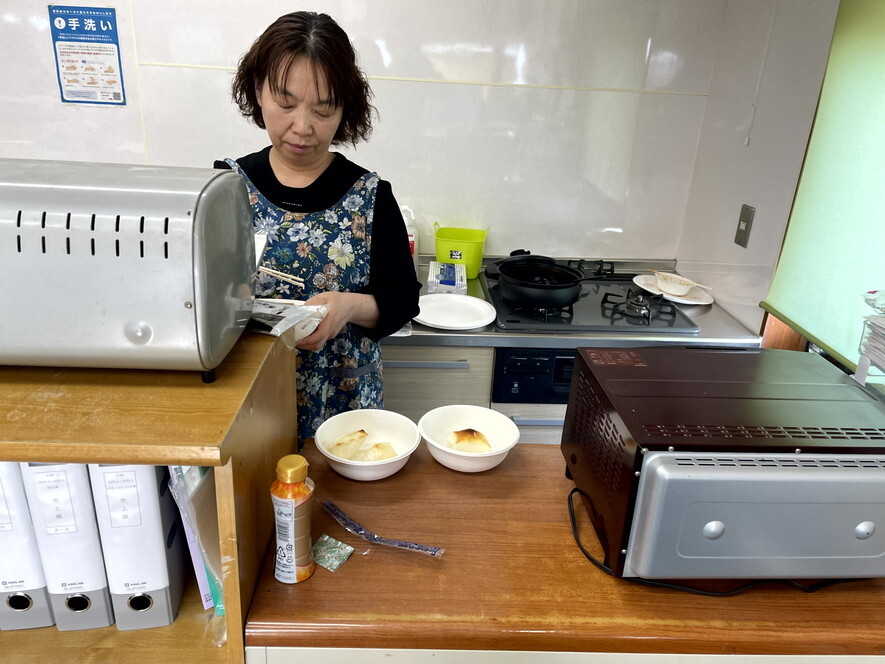 1月11日の鏡開きには、お正月に事務所や休憩室に飾られた鏡餅を焼いたりお汁粉にしたりして食べます。上の写真は鏡開きの時の様子です。
